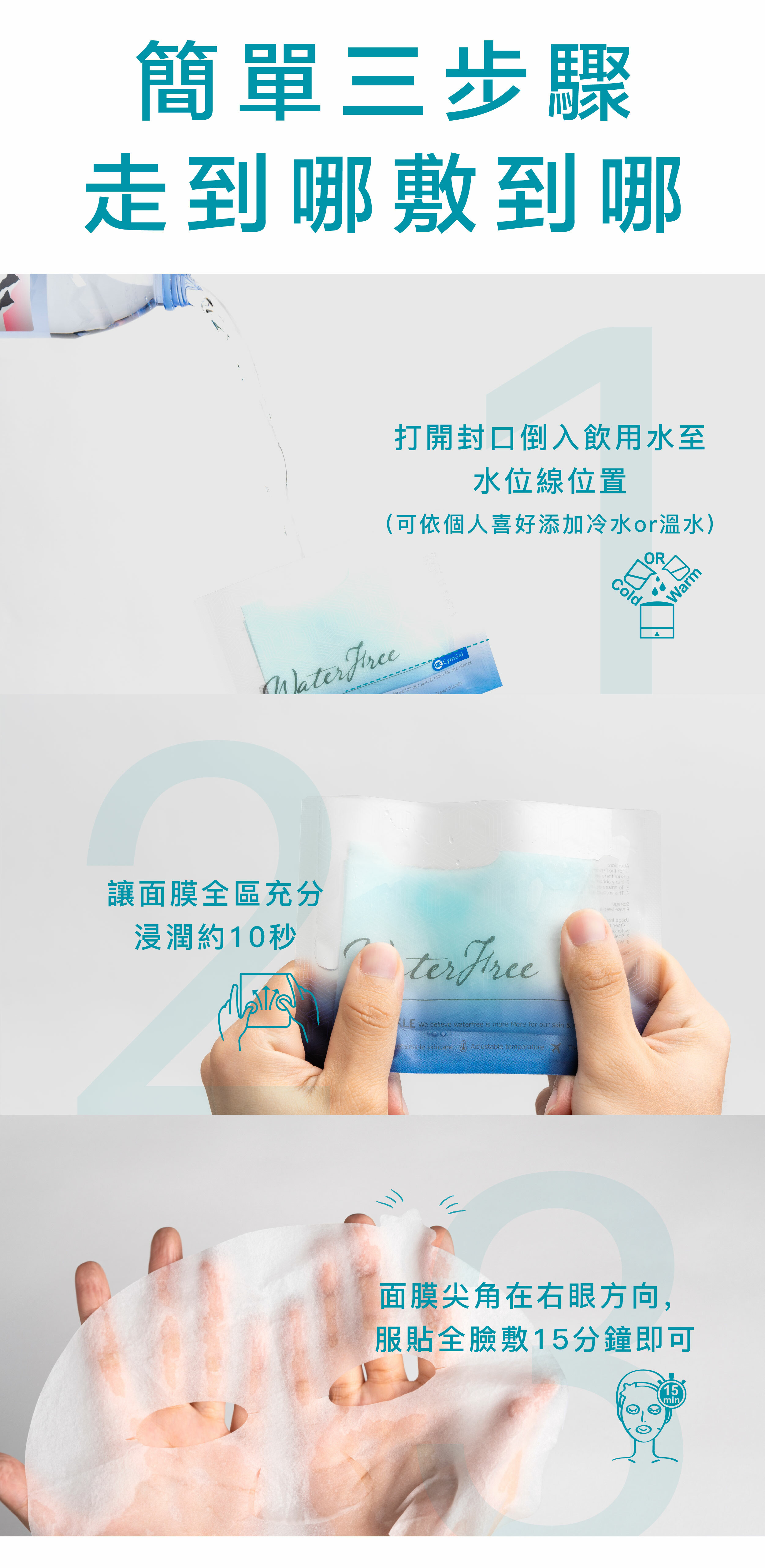 全新無水面膜保養概念—加入冷or 溫 飲用水,自行掌握水質安全